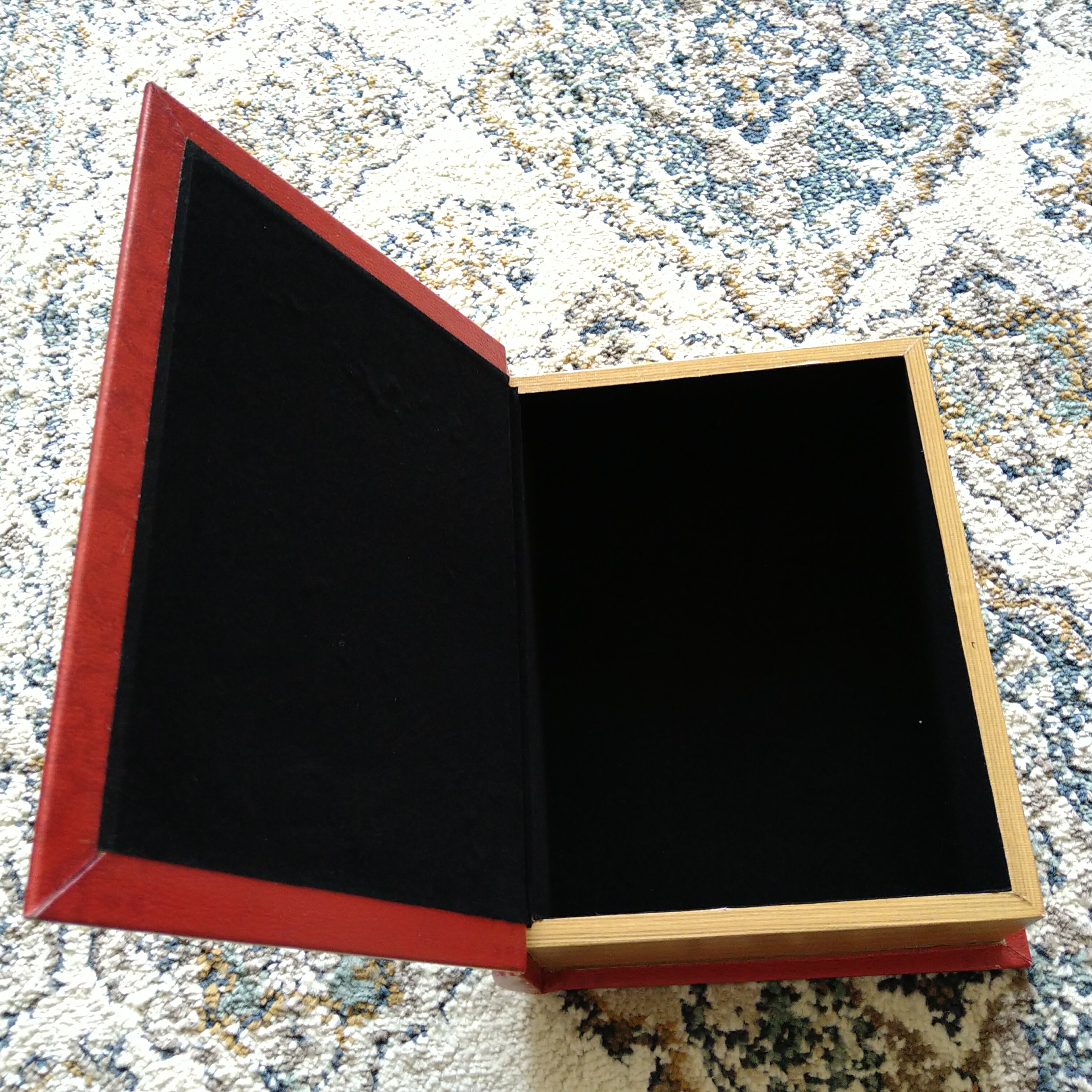 アンティーク調のブックボックスに、錫製のシートを加工して背表紙にしています。